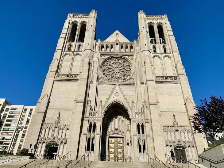 春の日に負けない荘厳なゴシック建築のグレース大聖堂は、