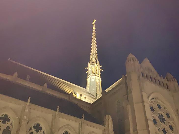 ノートル・ダム大聖堂に似せて造られたと言われてて "何ちゃってノートル・ダム" って呼んでるノブヒルの グレース大聖堂(Grace Cathedral) パリでの火災の翌日の夜マジマジと見上げてしまった、毎日何気なく見てた尖塔もいつもと違う風に見えた。