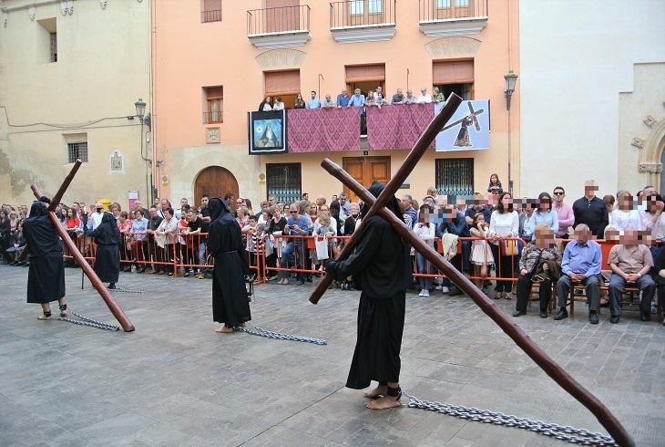 <足に鎖をつけ、重い十字架を担いで参列する敬虔な信者の姿も>
