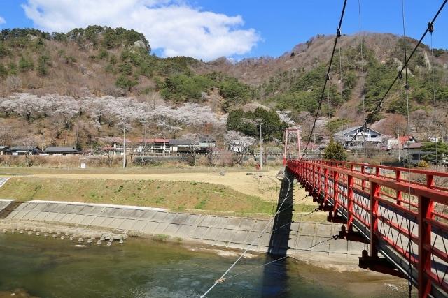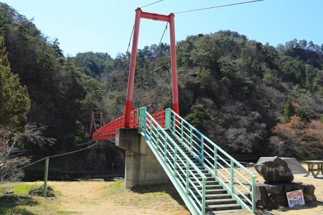 あゆのつり橋(長さ62m、幅1.5m)を渡ります。