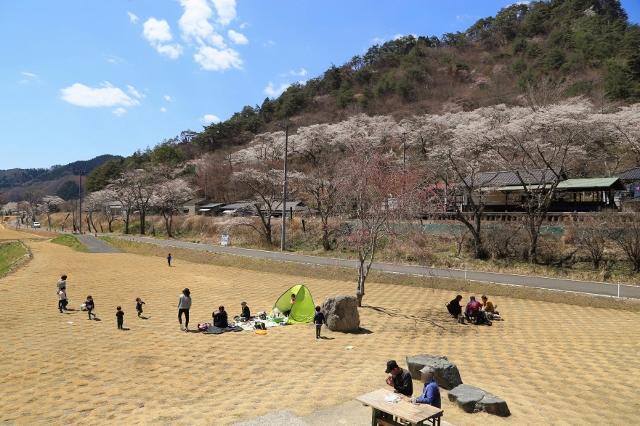 矢祭山駅と奥に広がるつつじヶ丘の桜並木