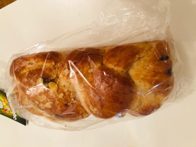 食パンサイズの大きな甘いパンです。伝統的なものは三つ編みの模様ですが、現代では丸い形のものなど、いろいろな形があります。