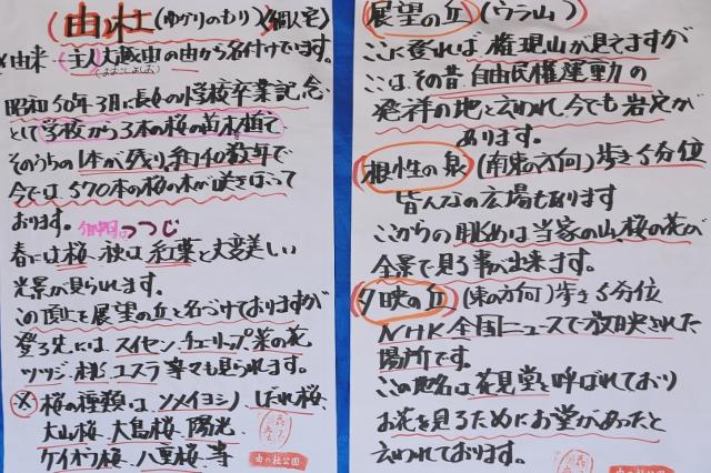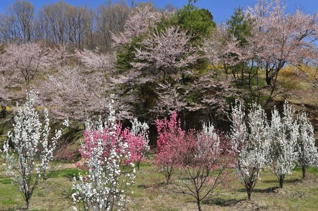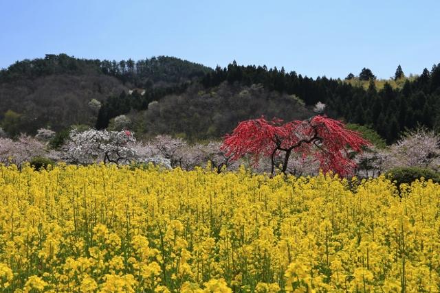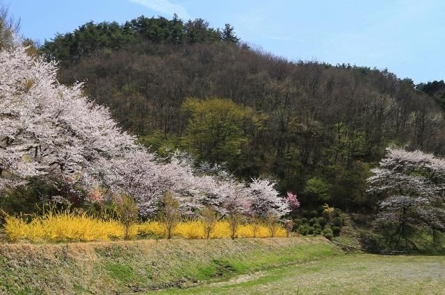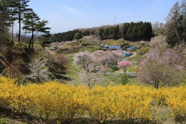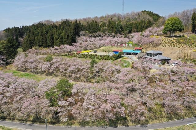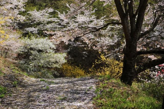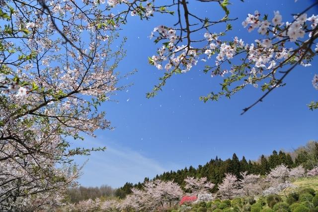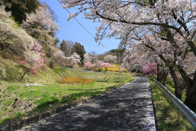 山里に植えられた約570本のソメイヨシノをはじめ、季節の花々などが楽しめるスポットです。