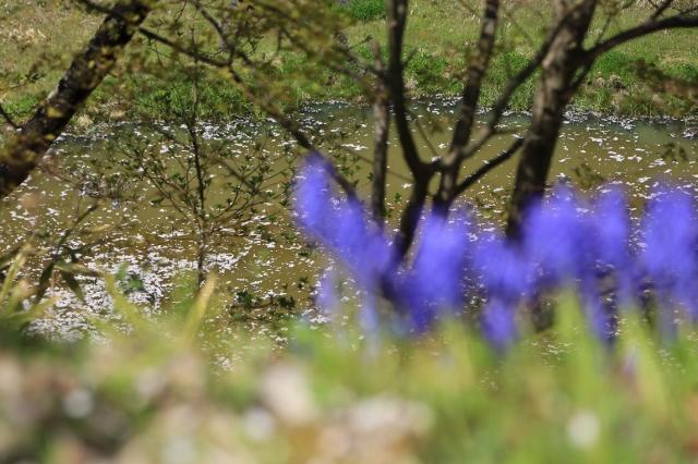 西側にあるため池では、ソメイヨシノの花びらが第二のステージを迎えていました^^;