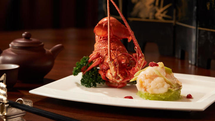 1つ目は中華料理店「嘉麟楼(Spring Moon)」です。料理のガイドブック『ミシュラン香港版2019』で1つ星を得ている名店です。同店では、ペニンシュラ香港に入社し、ペニンシュラ東京、ペニンシュラパリで働き現在はペニンシュラ上海で腕を振るっている鄧志強シェフが5月9日から6月30日まで特別ディナーメニュー(1928ドル+10%)と提供します。ガルーパにアラゲキクラゲ、なつめ、えのきだけを蒸した「古法盘龍蒸東星斑球(Steamed spotted garoupa with cloud fungus, red dates and enoki mushrooms)」、ロブスターをスープで味付けした「上湯焗龍虾(Simmered lobster with supreme soup)」などを味わえます。