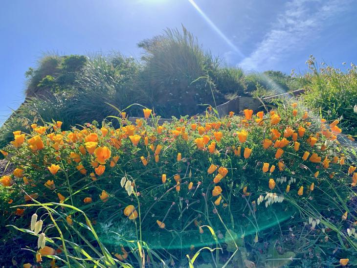 お天気もよく、ツインピークスに咲く州花カリフォルニアポピーも気持ちよさそうだ。