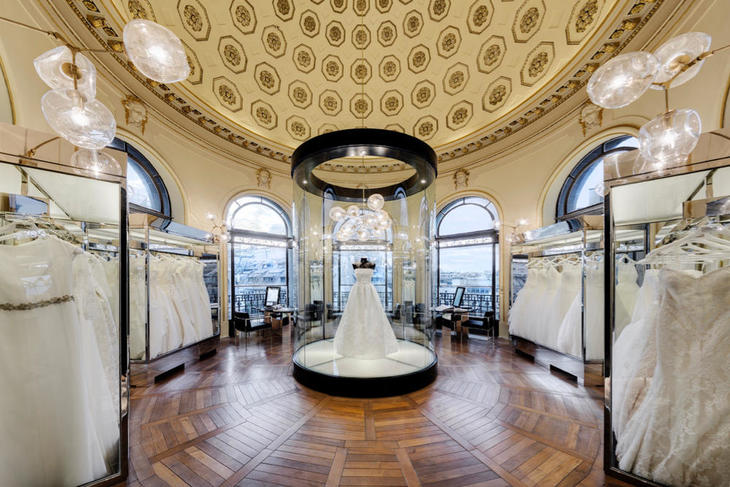 プランタン・オスマン本店のウェディングドレスコーナーは、ウィメンズストア6階。丸天井が美しい一角にあります。