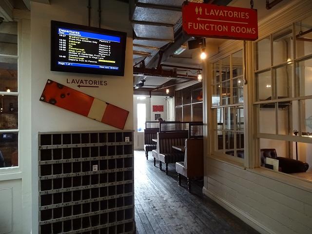 レトロで可愛い待合室なども再現されていて、まるで映画のワンシーンみたいな箇所も。それに荷物デポだっただけあり、ロンドンの駅中パブとしては最大面積を誇ります。