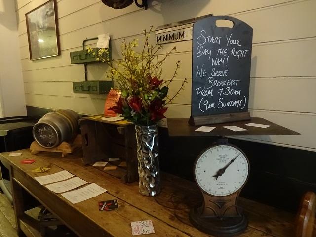 ここは昔エジンバラへの夜間郵便列車が大いに活躍していた頃、小包の物流拠点だったところ。だから当時の秤や掲示板などが随所にあしらわれているだけでなく、古い板材なども活用されているんですよ。