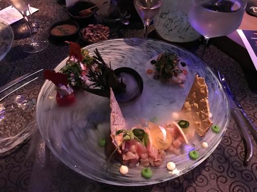 真ん中からドライアイスの白い煙が漂い~前菜から美味&満足♡