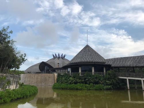 レジデントショー(常設公演)で、立派な藁ぶき屋根の建物がシアター。
