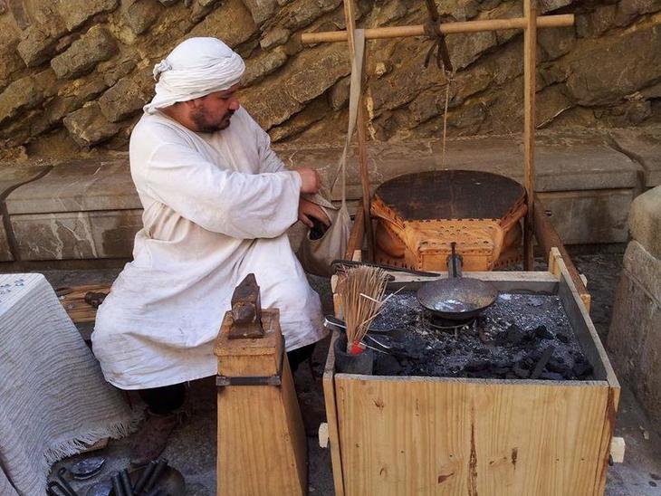 手工芸品の実演をしてくれています。