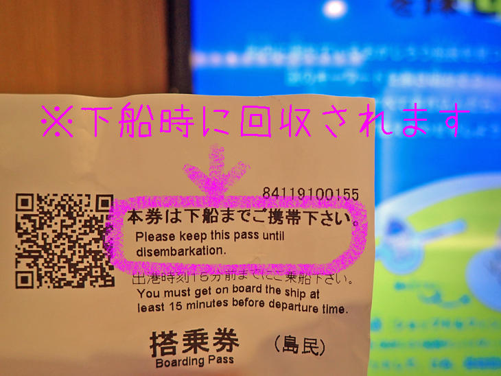 おがさわら丸乗船時に発券された搭乗券をご用意ください。