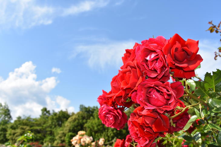 現在見頃の春バラは7月上旬まで、秋バラは10月~12月上旬が見頃になります。