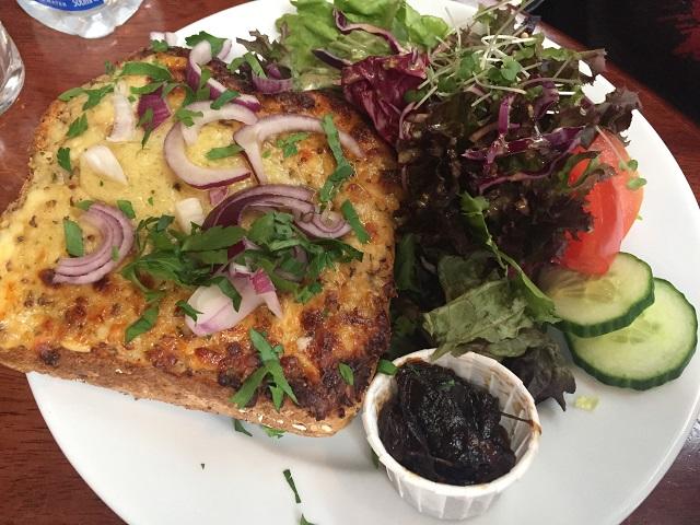 一方こちらは同行者が注文したウェールズ名物料理のひとつ、ウェルシュ・レアビット。チェダーチーズ、エール(ビールの一種)、マスタード、ベシャメルソースを添えたご馳走トーストです。こちらもすごく美味しいと言ってました。