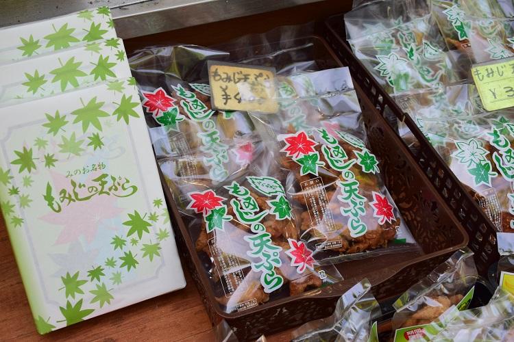 お土産は、もみじの天ぷらです。その場で揚げ立てを食べることもできます。