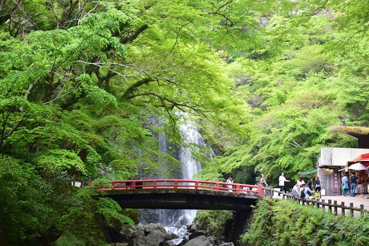 こんにちは。大阪特派員のかおりです。今回は、大阪府北部の箕面市にある、箕面公園をご紹介します。この公園は、大阪府でも有数の紅葉が美しい公園で、箕面の滝で有名なところです。紅葉の時季は大混雑するスポットですので、気後れされる方もいらっしゃることと思います。そんな方は今、新緑の季節にお出掛けになってはいかがでしょうか。阪急箕面駅から川沿いに、約45分のハイキングです。山道ではありませんので、普段着にスニーカーで大丈夫です。