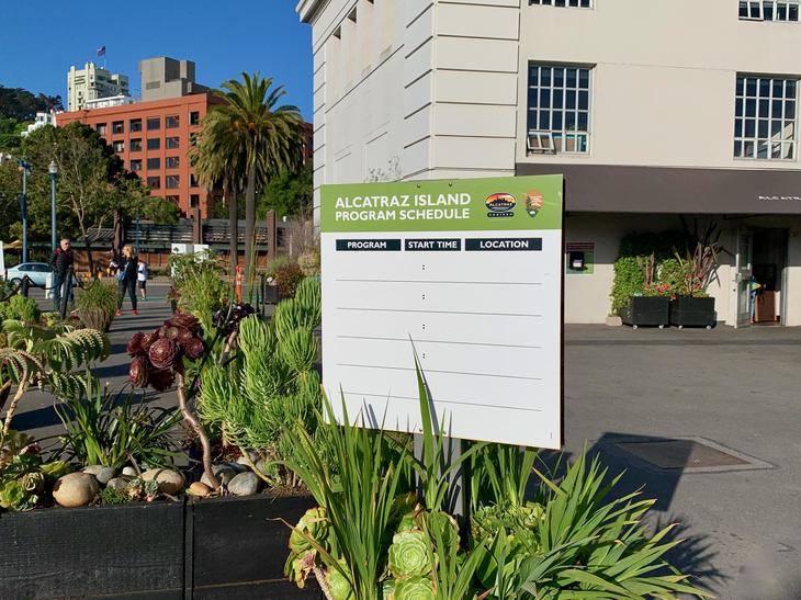 特に夏の繁忙期は "プラチナチケット" みたいになるアルカトラズ島ツアー。 フェリー発着場のピア33には「Programs & Events」 のボードがあるので、乗船前にちょっとチェックしてみてね!