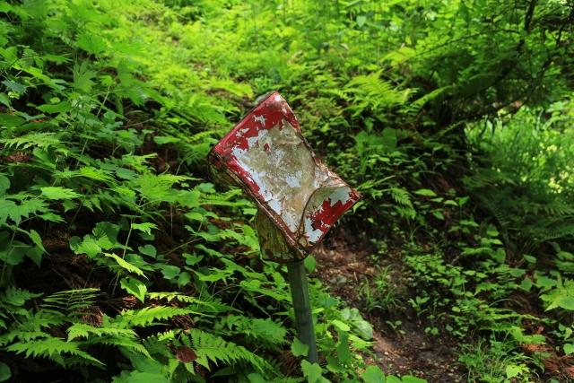 林道の途中にある登山道入口