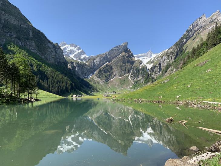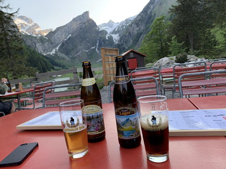 アッペンツェル地方の地ビール「クヴェルフリッシュ(Quällfrisch)」のラベルとして描かれているのが、このゼーアルプ湖とそれに写る山々なので、機会があったら手にとって見てみてくださいね。