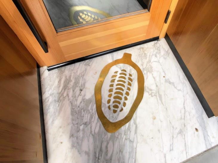 エントランスの足元にはカカオのサイン!店内でもこのような凝ったデザインを楽しむことができますよ♪
