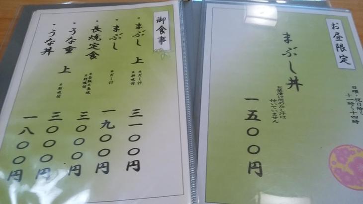 ●「うな豊」さんのメニューです。お昼限定のまぶし丼(1,500円もあります)