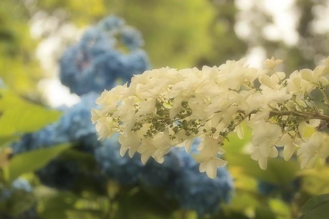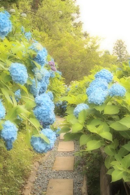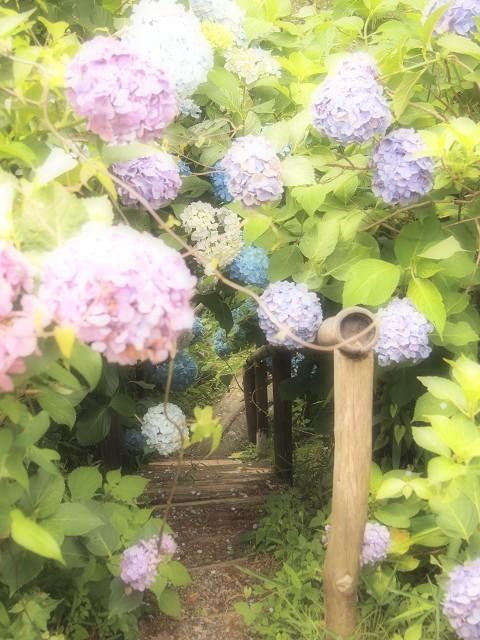 紫陽花がよく似合う季節になりました。今月は県内の紫陽花をご紹介します。真庭市落合町の普門寺です。車を走らせながらも、お寺が近づいてくると、これでもか!っていうくらい車道に紫陽花が咲き乱れています。山門の前には、四季桜が植わっています。