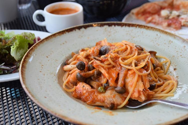 オーダーしたのは、週替わりランチの鶏もも肉のジャンボネット。鶏肉の中に松の実とマッシュルームが詰められていました。お肉が大変柔らかく美味でした。