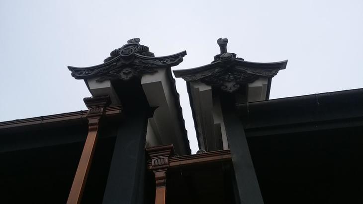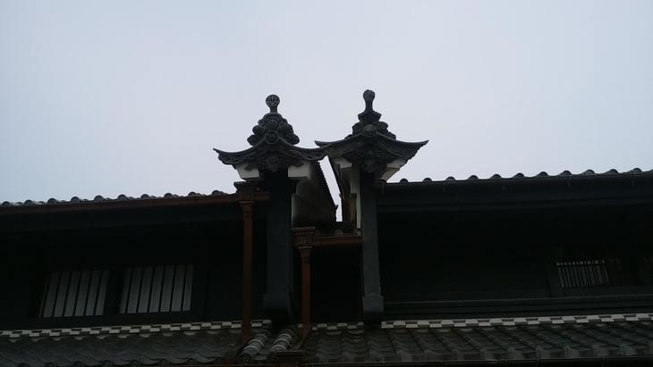 ●真下から見た画像です。右側の高い方の「うだつ」を奥に引っ込め、高さを目立たなくしています。隣人に対する気遣いとしてこうした造りにしているそうです。日本人の奥ゆかしさですね。