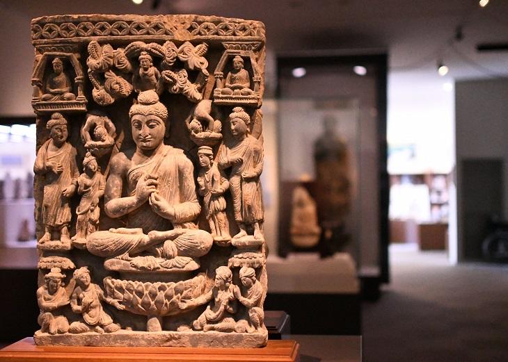 コレクションの数は約1万点。上の写真「仏陀説法図」のように、仏像単体ではないものも積極的に集めてこられたとか。周囲に描かれ彫られた人々を観ることで、その時代の暮らしが見えてくると考えていたそうです。