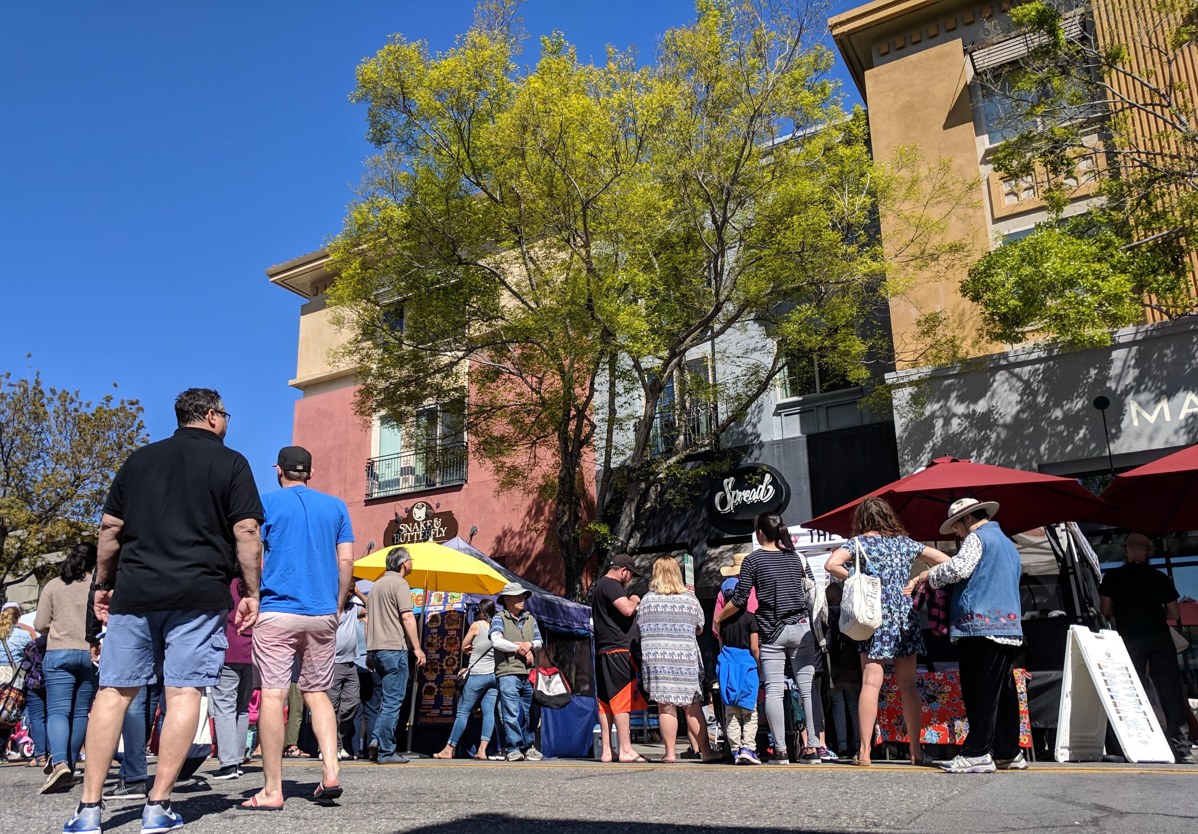 Campbell Farmer's Marketはダウンタウンキャンベルの通り(商店街)が日曜だけ朝市に早変わり!というファマーズマーケットです。規模が大きく、農家直販の野菜スタンド、果物スタンドから立食スタンドなど、さまざまな出店が並びます。