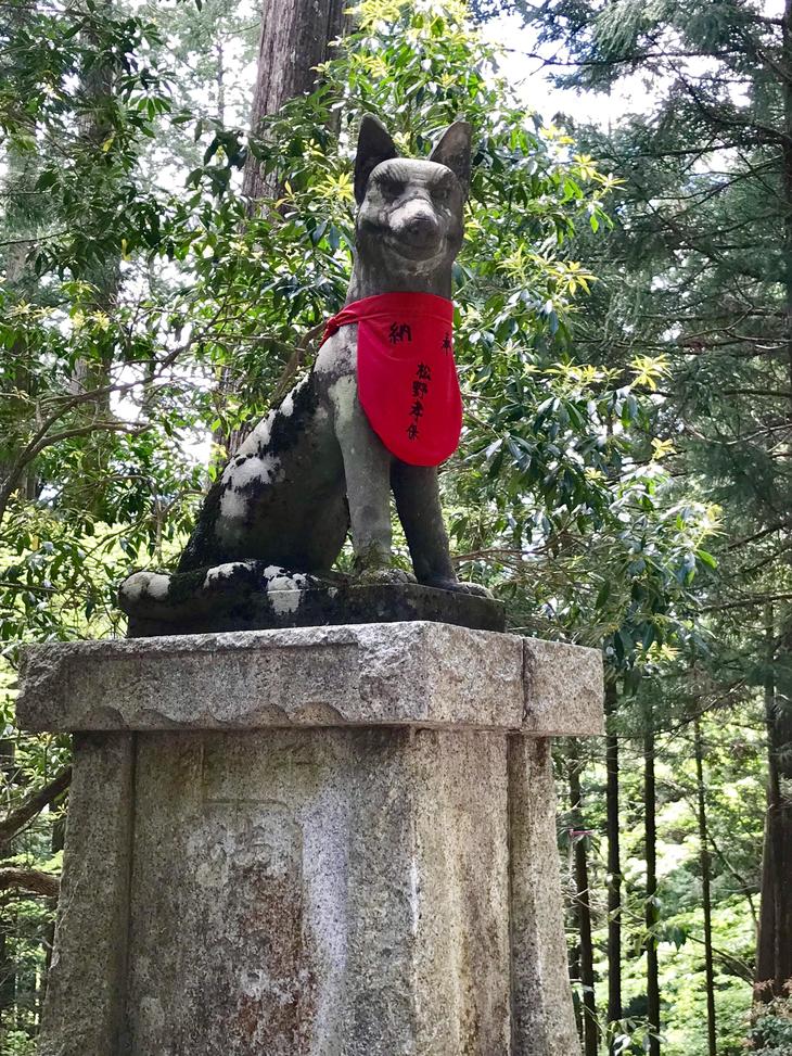 普通の神社は狛犬だけど、狼の像が鎮座しています。それは、江戸時代より獣から農作物を守り、また盗賊による災難から身を守る神の使いとしてだそうです!