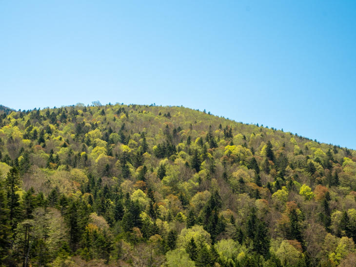 "日勝峠の春紅葉 / Spring leaves at Nissho Pass, Hidaka Area in Hokkaido"