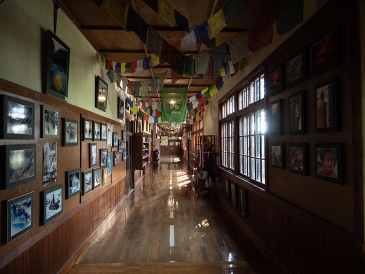 廊下に飾られた日高の写真やラフティングなどの写真も美しく、