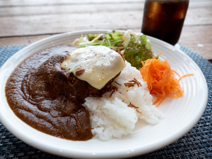 カフェタイムのメニューは、男爵スタイル和牛バーガー(1,300円)、函館ハンバーグカレー(1,400円)、道南ポークのカツカレー(1,400円)と魅力的なメニューの中から、「男爵コロッケチーズカレー」(1,250円)を。