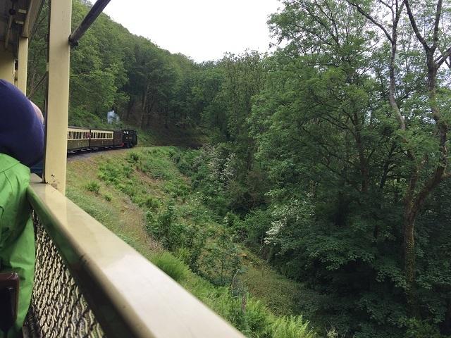 それに、やっぱり窓からの眺めが最高!新緑したたる渓谷を眺め降ろして、気持ちの良い時間を味わえました。