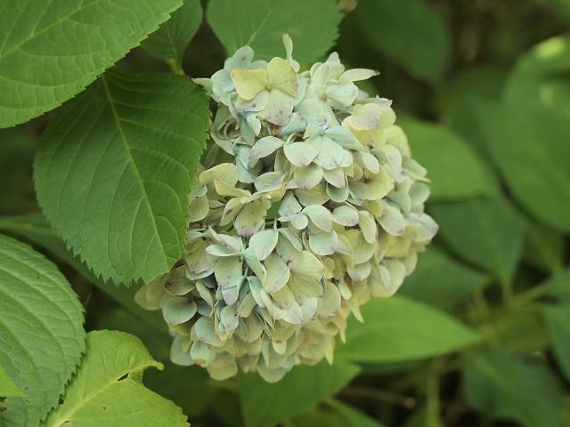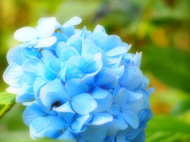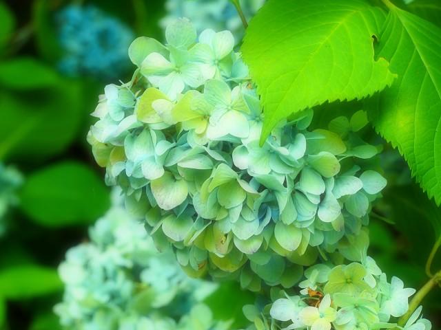 緑の木立にブルーの紫陽花が爽やかです。
