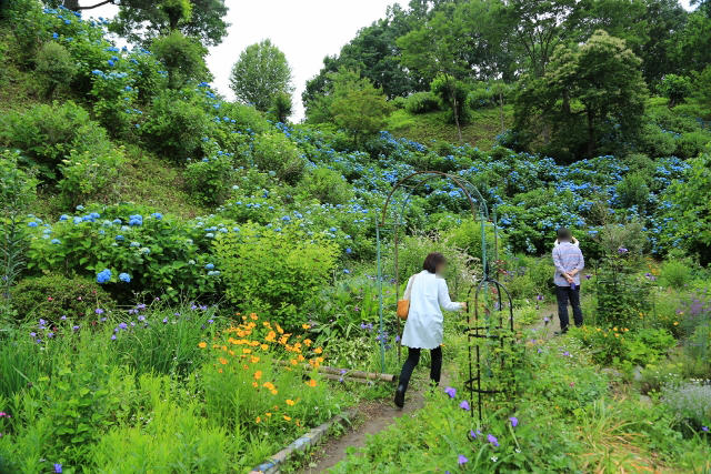 周辺道路にも約1万株の紫陽花が植えられており、こちらは色彩も豊富です。