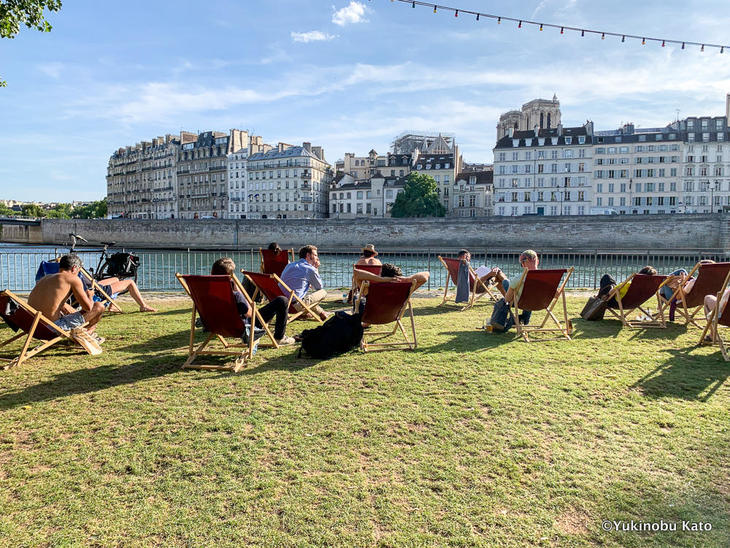 どちらの会場も、それぞれの良さがあって好きなのですが、セーヌ川沿いはパリらしさを存分に感じられることが魅力です。歴史的建造物に囲まれながら、読書などして過ごす時間はパリプラージュならではです。