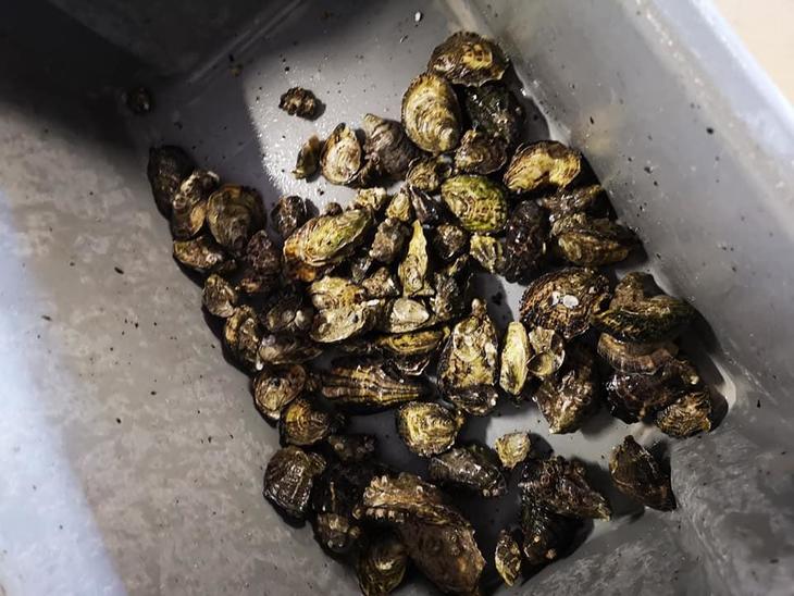 ↓水揚げされて、大きさの選別を受けた牡蠣↓