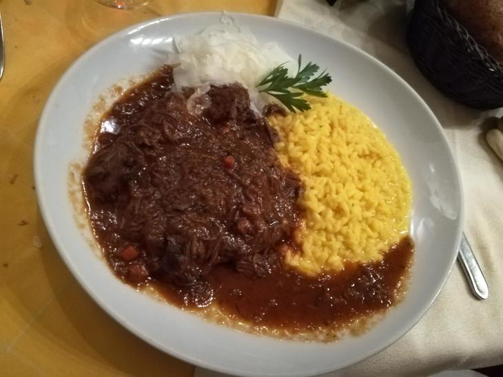 こちらは夫が注文しました牛肉の煮込み料理リゾット・ミラネーゼ添え