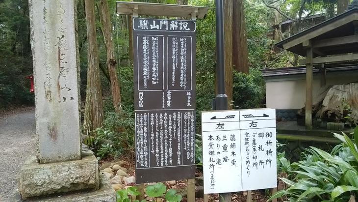 ●しばらく進むと案内板があります。右が祈祷所(札所)で左が本堂(薬師本堂)です。