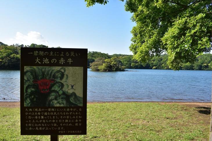 一碧湖は昔、赤い牛が棲んでいて、時々水中から頭を出して舟で通る人間を喰ったり、