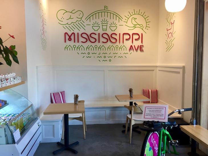 一番新しいのが、先月オープンしたばかりのホーソン店。こちらとミシシッピ店にスムージーを作れる自転車があります。他のお店は、自転車は携帯がチャージできるようになっているそうです。