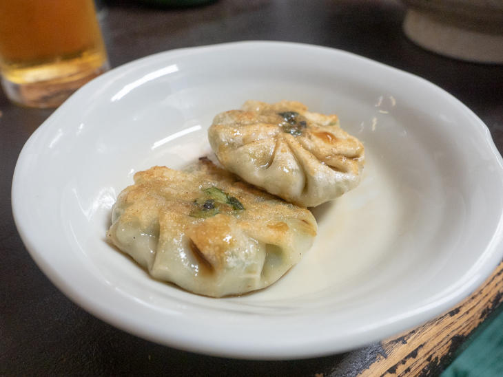 今回は、「えびにら餃子」(2個・200円)もいただきました。
