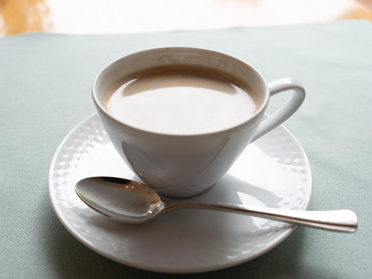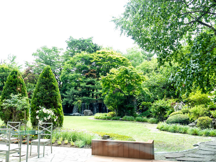 食後のコーヒーは、ホテル中庭の緑で癒されながらいただきました。