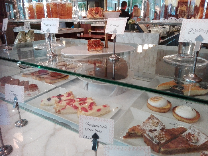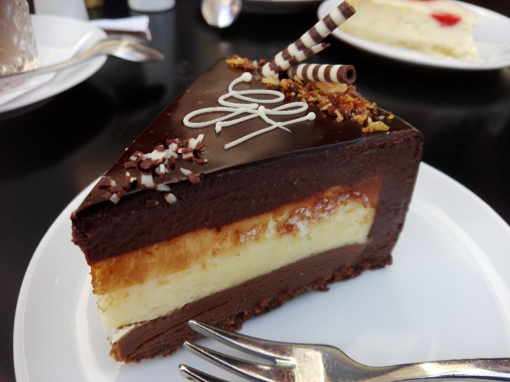 今回頼んだこの二つのケーキは、左の「3erlei Schokotorte」と右の「Cheese Cake」です。「3-erlei」というのは「三種の」という意味で、写真の通り、三層のクリームなっています。これがチョコ好きにはたまらない濃厚さ!チーズケーキも上品な味で舌に乗せるととろけるような感触。ここでは紹介しきれないその他のデザートも外れがなく、見事に全て美味しいですよ!