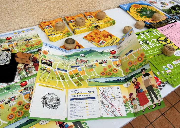 メイン会場前の駐車場わきにある案内所には、記念スタンプも押せるひまわり畑の地図が置いてあります。