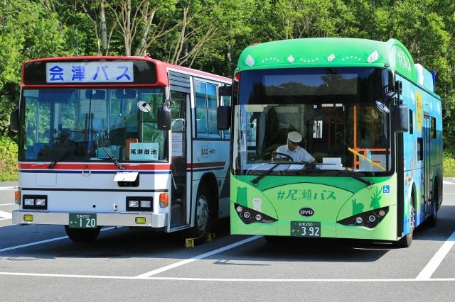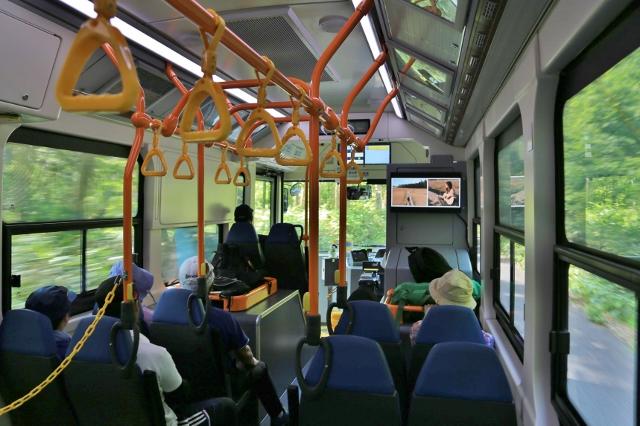 今年から登場した低公害の電気バス(向かって右)に乗りました。