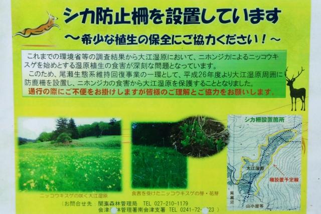 鹿の食害を防ぐために設置された防護柵を越え、大江湿原をへと入ります。